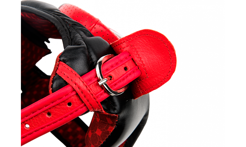 Тренировочный шлем UFC изготовлен из натуральной воловьей кожи класса А. Внутренняя часть шлема имеет нескользящую мягкую подкладку. Для защиты щек и подбородка применяется многослойная пена. Широкая липучка обеспечивает аккуратный вид и безопасность. Благодаря контурной защите щёк гарантирована полная безопасность.