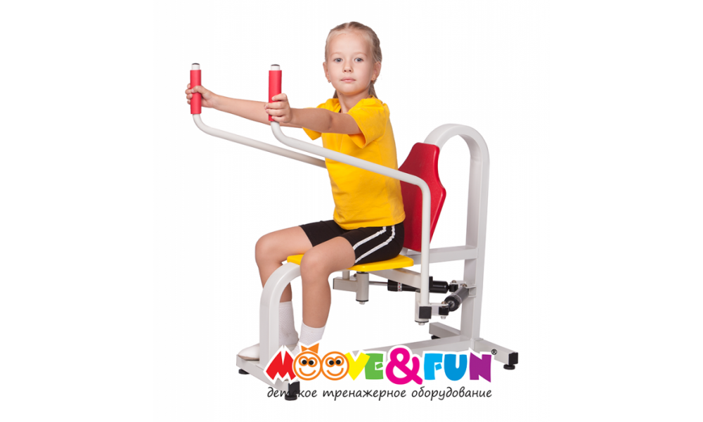 Силовой детский тренажёр баттерфляй торговой марки Moove&Fun предназначен для тренировки верхнего плечевого пояса, грудных и спинных мышц. Рассчитан на детей в возрасте от 5 до 8 лет и весом не более 50 кг. Рама тренажера выполнена из высококачественных материалов. Механизм переключения нагрузки прост в эксплуатации. Вес тренажёра позволяет легко его передвигать, переставлять в любое место спортивного уголка или зала. Тренировка ребёнка проходит интересно и с пользой для здоровья