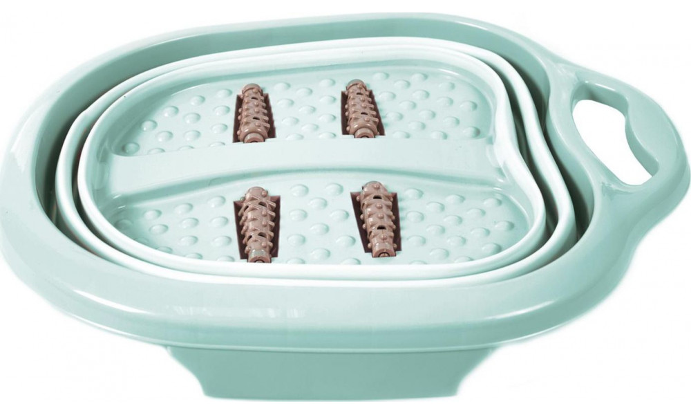 В конце дня вы испытываете усталость и тяжесть в ногах? Лучшее решение – попарить ноги с солью и душистой пеной! Предлагаем вашему вниманию новинку – компактную складную ванночку для ног. Вам больше не нужны громоздкие тазики: ванночка оснащена резиновым складным элементом и прочным пластиковым основанием для сохранения формы во время использования, а также устойчивыми ножками и удобной для переноски ручкой. Массажная поверхность и ролики с шипами позволят вам получить легкий массажный эффект, быстро восстановить силы и снять напряжение. Используйте складную ванночку также для домашнего педикюра и спа-процедур. В сложенном виде она займет совсем немного места на полке в ванной комнате или кладовке. Преимущества: ● Массажная поверхность и 4 ролика с шипами для релаксации стоп. ● Удобная закругленная форма. ● Альтернатива громоздким тазикам. ● Складной корпус. ● Устойчивые ножки. ● Экономия пространства для хранения. ● Удобная для переноски ручка.