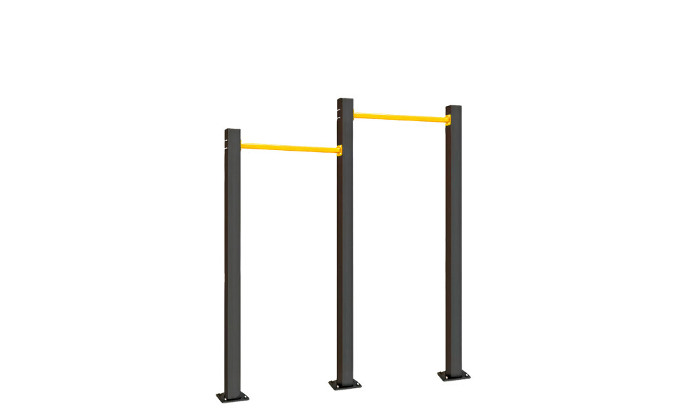 Модель с двойным турником рассчитана на тренировку всех групп мышц. Подходит для людей разного роста, пола и возраста. Имеет широкое назначение, можно использовать в составе воркаута или отдельно.